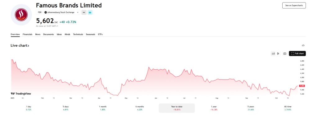 - Famous Brands raised dividend 8%, reflecting confidence in steady growth and stronger cash position.